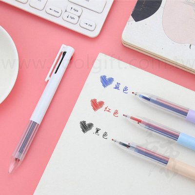尺寸:約14.3cm 筆芯:0.7mm(紅、黑、藍) 筆桿顏色:紫、藍、橘、白
