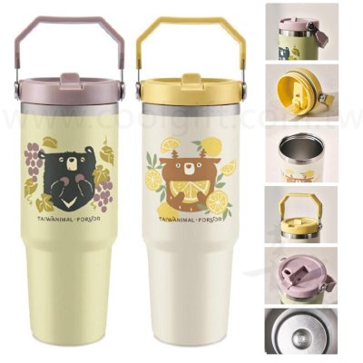 尺寸:約Φ8.7xH23.8cm±5% 容量:約850ml±5% 材質: 杯身-內膽304不鏽鋼 上蓋-PP、矽膠止漏圈、矽膠塞 吸管-PP 款式:鉤鉤熊、花立漉 特性: 1.手提大容量,每次盛裝所需水量,戶外活動/外出購物一拎就走 2.不鏽鋼雙層真空,保冰/保溫,一年四季任何時候貼心陪伴 3.上寬下窄設計,既能放進汽車置物架,也能手搖飲友善,外帶各式飲品 4.不需另備杯套,內建提把x真空保溫,最懂你的行動飲水美學 5.自備環保杯,實踐淨零綠生活,永續愛地球