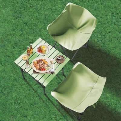 尺寸、重量: 桌子-約53x51x50cm、2.2kg 椅子-約43x43x68cm、0.9kg 材質:牛津布+加粗鋼管 內容物:桌子x1、椅子x2 包裝:提盒 特性: 1.可折疊好收納 2.適用於露營、野餐、沙灘、釣魚、居家