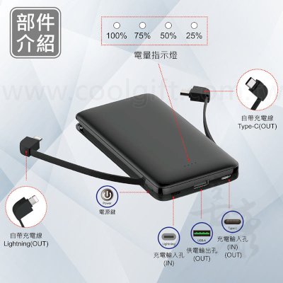 可拆卸自帶雙線無線磁吸三用快充行動電源