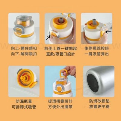 2.一鍵開蓋設計,可直飲或吸管口,方便飲水