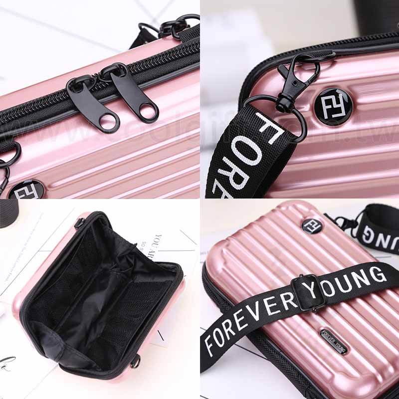 ※附韓版肩背帶 尺寸:約17x11x6cm±5% 顏色:多色可選 包裝:盒裝 功能:電子產品收納包/文具收納包/化妝品收納包/旅遊盥洗收納包 特色:防潑水、內層暗袋設計、雙拉鍊、口徑大 ※LOGO客製方式:滴膠貼紙