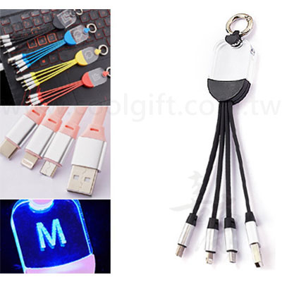 產品尺寸:L16 CM 材質:線TPE,壓克力,鋁 包裝:白色封口膠袋 功能:充電 標準電流:2A 充電頭:microUSB+Lightning 8PIN+Type-C(支持同時充電) Lightning:適用於iP5/5C/5S,6/6Plus,7/7Plus,8/8Plus,iP X/Xs Max/Xs/Xr/等Lightning介面的手機或平板. 顏色:紅/藍/黃/白/黑/粉 特色: 1.充電時,壓克力處會發光