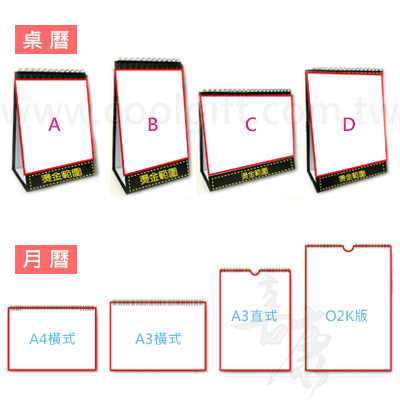 包裝:月曆無包裝、桌曆熱縮膜包裝(OPP袋費用另計)
