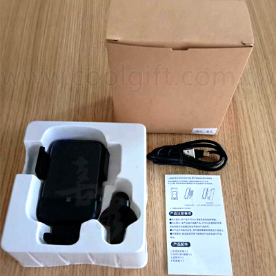 出貨包含:無線充電手機支架x1、出風口夾+旋蓋x1、說明書x1、包裝盒x1