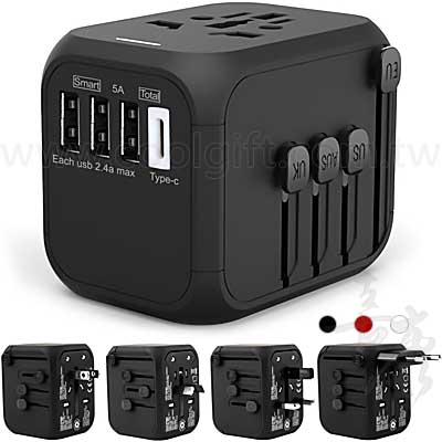 插頭規格:EU/UK/US/AUS四合一 插孔:3USB、1Type-C 輸出:5V/5A(總量)、5V/3.4A(單一孔) 單位功率:100-250V、6A/1500W 材質:防火PC 重量:約107.7g 尺寸:6.7x5.7x5.02cm