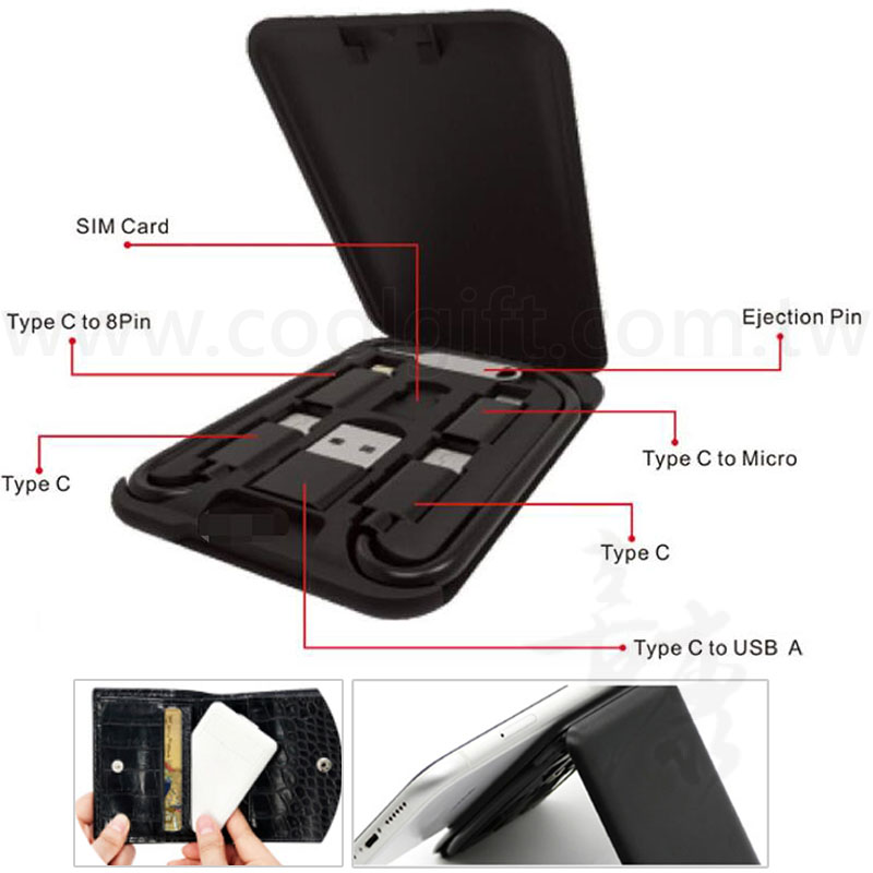 特點:還在帶一推充電線嗎?一卡在身巧妙收納出門旅遊、返鄉超輕鬆,三種接頭通用也可當簡易式手機架。