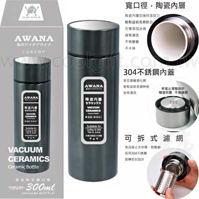 材質:蓋子-PP塑膠、密封圈-矽膠、內蓋&濾網&瓶身內膽-304不鏽鋼、內表層-高白瓷