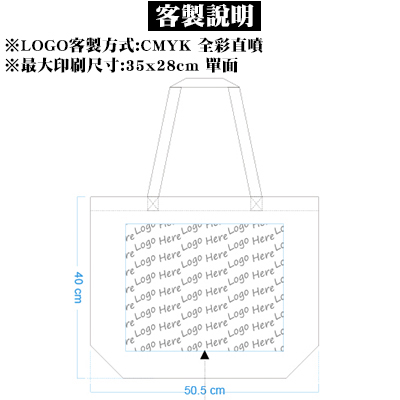 尺寸:長50.5cm x 高40cm x 底寬14.5cm,長提帶(因材料縮率以及人工車縫,成品尺寸誤差正負5-8% 為正常範圍。)