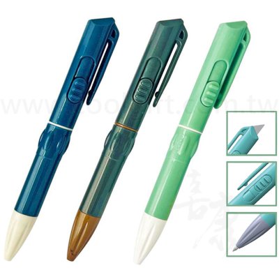 1.結合原子筆(旋轉式) & 美工刀,可用於日常生活裁切作業、切割皮膜、簡單的美工作業。