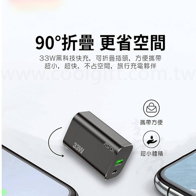 1.90°摺疊更省空間,33w黑科技快充,可折疊插頭、方便攜帶、超小、超快、不占空間