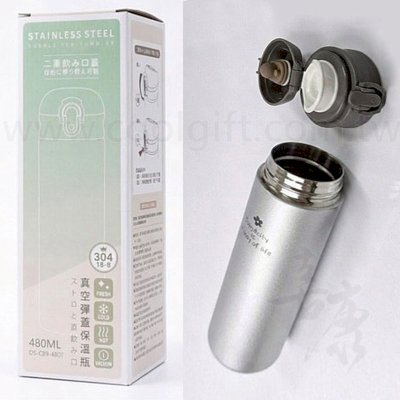 尺寸:約寬6.5×高22.5cm 容量:約480ml 材質: 本體內膽-SUS304不鏽鋼(內膽覆鈦) 蓋子-PP聚丙烯、矽膠 耐熱度:PP、矽膠-約120°C 包裝:彩盒 特性: 1. 彈蓋設計-單手即可輕鬆操作,飲水方便 2. 內膽採用不鏽鋼覆鈦工藝,耐用穩定且不易殘留氣味 3. 雙層真空結構,長效鎖溫 4. 安全鎖扣-防誤觸開蓋