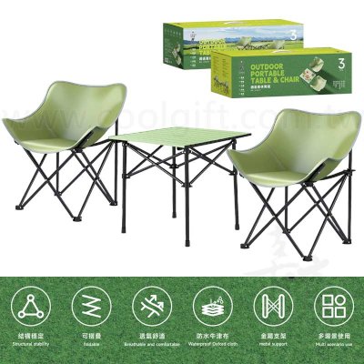 尺寸、重量: 桌子-約53x51x50cm、2.2kg 椅子-約43x43x68cm、0.9kg 材質:牛津布+加粗鋼管 內容物:桌子x1、椅子x2 包裝:提盒 特性: 1.可折疊好收納 2.適用於露營、野餐、沙灘、釣魚、居家