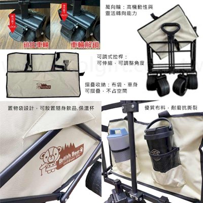 尺寸: 展開-約33x42x105cm(含拉桿高度) 收納-約52x41x11cm 材質:PP+金屬拉桿 規格:四輪萬向款 內容物:購物車x1、前輪x2、煞車後輪x2、上蓋備用配件x2 特性: 1.煞車滾輪設計 2.五秒快速折疊 3.可當手機支架、杯架使用