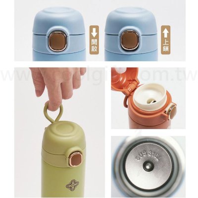 尺寸:約7.4x22cm±5% 容量:約350ml±5% 材質:鈦+PP+止水圈 保溫效能:6H≧約64℃以上±3℃ 顏色:白、綠、紫、粉 特性: 1.鈦材質比不鏽鋼更輕,方便攜帶 2.不殘留氣味-適合裝咖啡、茶或果汁 3.安全無金屬異味 4.按壓式開關,方便飲用
